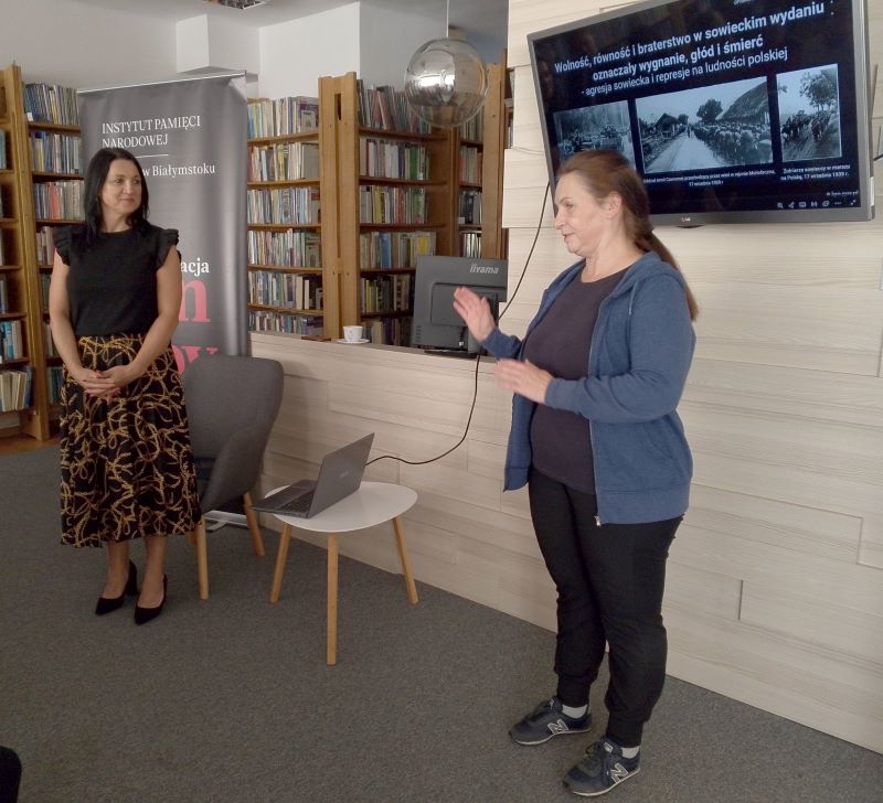 17 września, w kolejną 86-tą już rocznicę napaści Związku Sowieckiego na Polskę, odbył się w bibliotece wykład pracownika białostockiego oddziału IPN. Pani Teresa Dzięgielewska w prelekcji pt. "Wolność, równość i braterstwo w sowieckim wydaniu oznaczały wygnanie, głód i śmierć - agresja sowiecka i represje na ludności polskiej" obszernie przedstawiła konsekwencje tej agresji dla ludności polskiej. Opisała ona zmiany polityczno-organizacyjne na terenach okupowanych przez ZSRR, deportacje w głąb Rosji i do Kazachstanu, detale życia Polaków „na nieludzkiej ziemi”, zbrodnię katyńską oraz jej konsekwencje po odkryciu masowych grobów przez Niemców. Nie zabrakło wątku losów tych Polaków, którzy wyszli z terenów ZSRR wraz z armią gen. Andersa oraz tych Polaków, którzy „nie zdążyli do Andersa” i ramach armii gen. Berlinga wrócili do Polski.