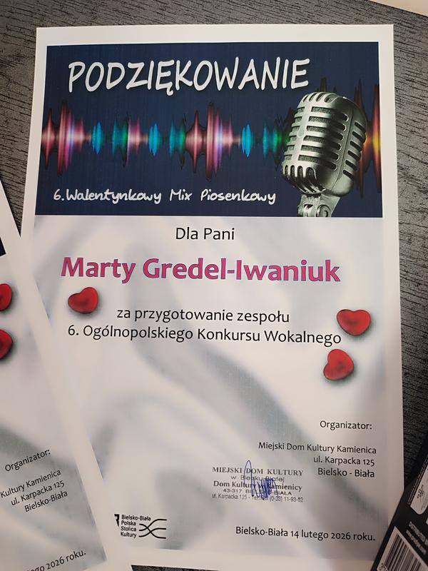 Ponadto zespół KWARTA wyśpiewał II nagrodę w Ogólnopolskim Konkursie WALENTYNKOWY MIX PIOSENKOWY, który odbył się 14 lutego w Bielsko Białej.