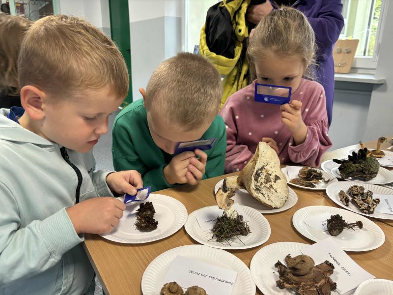 Wystawa i towarzyszące jej zajęcia edukacyjne stanowiły świetną okazję do poznania świata grzybów – ich różnorodności, znaczenia w przyrodzie oraz ciekawostek, które potrafią zadziwić każdego. Okazało się, że niektóre grzyby pachną czosnkiem, rzodkiewką, a nawet maggi. Niektóre gatunki, choć wyglądają i smakują łagodnie, są bardzo trujące, podczas gdy inne lepiej omijać ze względu na nieprzyjemny zapach. Świat grzybów, podobnie jak Puszcza Białowieska, jest niezwykle barwny i fascynujący.