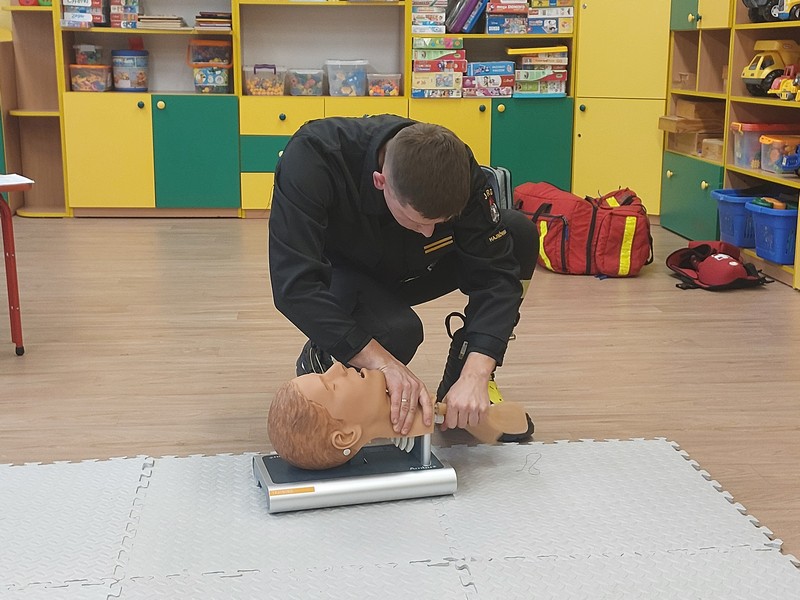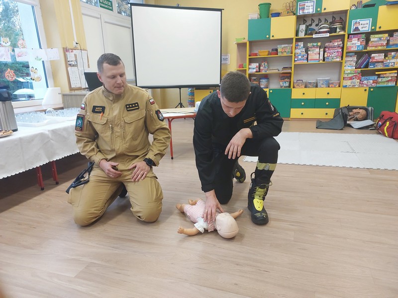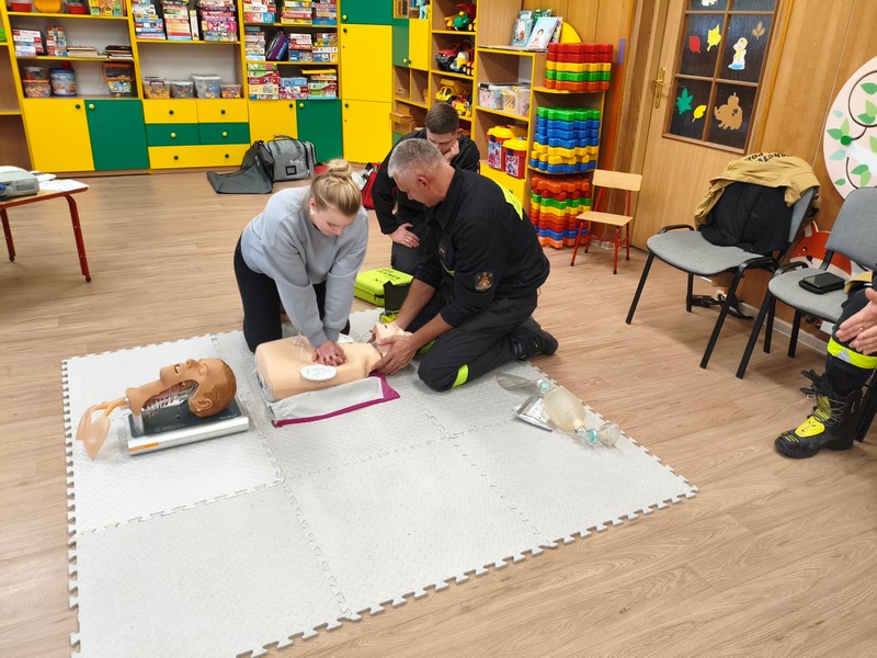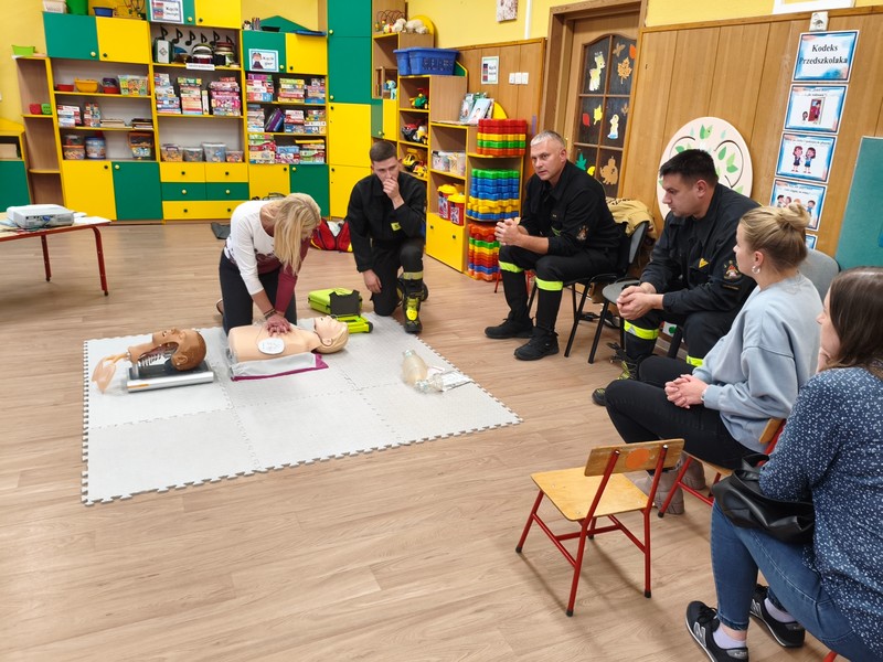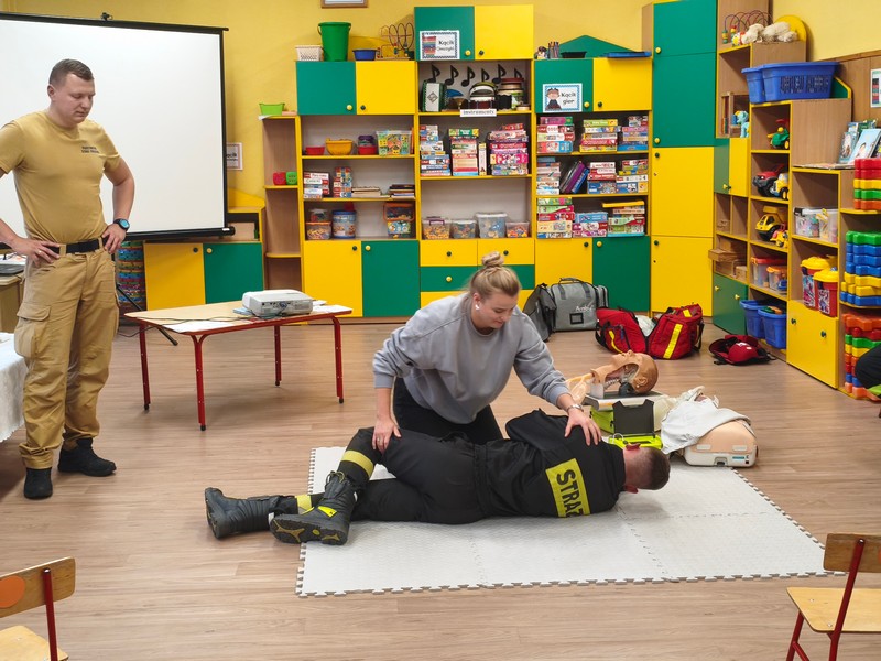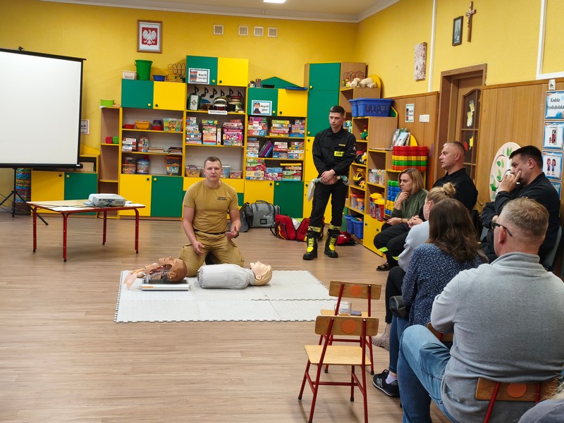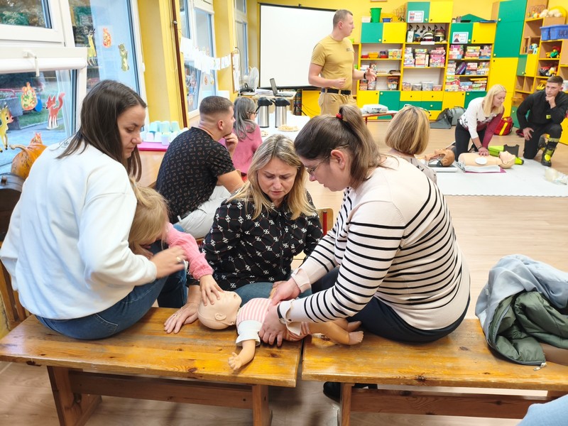 Wydarzenie zostało zrealizowane przy współpracy z Komendą Powiatową Policji w Hajnówce oraz Powiatowej Państwowej Straży Pożarnej w Hajnówce. Dzięki Strażakom Rodzice dzieci w profesjonalny sposób poznali najważniejsze zasady udzielania pierwszej pomocy. Pod okiem fachowców mogli uczyć się jej udzielania na fantomach.