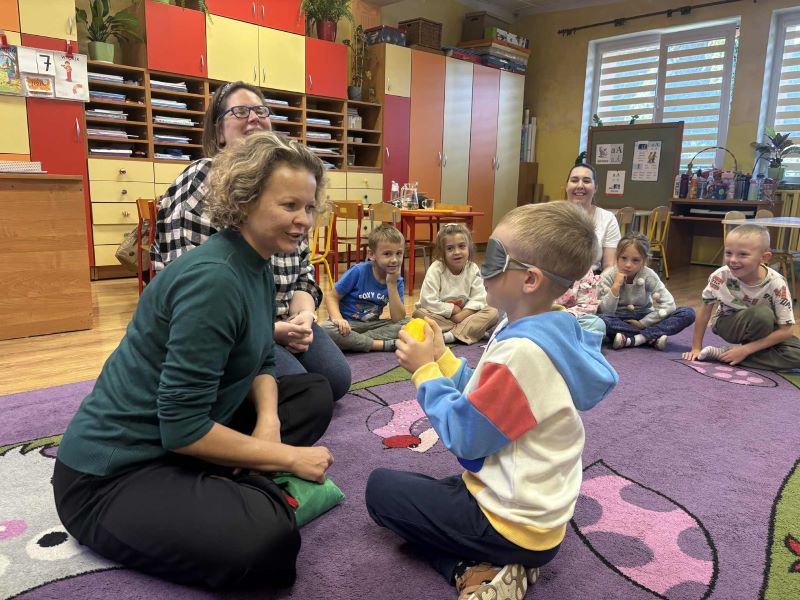 W grupie „Sówki” z Przedszkola Nr 1 odbyło się wyjątkowe spotkanie z przedstawicielkami Polskiego Związku Niewidomych, które w niezwykle ciekawy i angażujący sposób przybliżyły dzieciom świat osób niewidomych i słabowidzących. Zajęcia miały na celu uwrażliwienie najmłodszych na potrzeby innych oraz pokazanie, że każdy z nas może być wsparciem dla osoby z niepełnosprawnością wzroku.