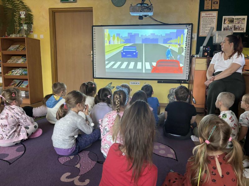 Duże zainteresowanie wzbudziła także projekcja krótkiego filmu rysunkowego „N jak niewidomy”, który w przystępny sposób pokazał, jak zachować się, gdy spotkamy osobę niewidomą na ulicy. Po projekcji dzieci wzięły udział w praktycznych ćwiczeniach w parach – wcielały się w role „niewidomego” i „przewodnika”. Dzięki temu mogły zrozumieć, jak ważne jest delikatne i bezpieczne prowadzenie drugiej osoby.