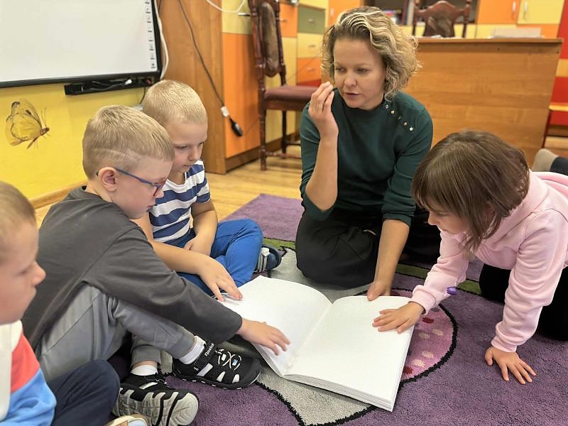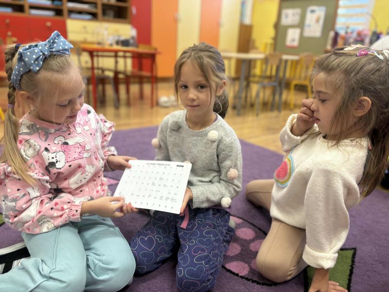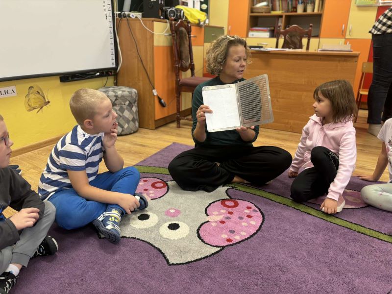 Na zakończenie spotkania prowadzące zaprezentowały pismo Braille’a oraz specjalne technologie komputerowe, które umożliwiają osobom niewidomym czytanie i pisanie. Dzieci z ogromnym zainteresowaniem dotykały wypukłych literek i słuchały, jak komputer odczytuje tekst głosem.