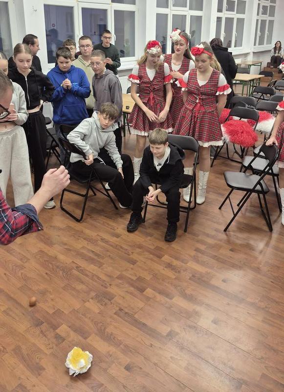 Na początek młodzież wzięła udział w aktywnej rozgrzewce integracyjnej, obejmującej gry komunikacyjne polsko–litewskie oraz kreatywne zadania, takie jak „lądowisko dla jajek”. Atmosfera szybko stała się swobodna i pełna śmiechu.