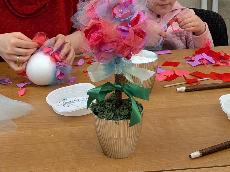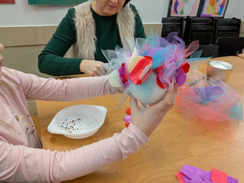 Podczas spotkania uczestnicy wspólnie tworzyli własnoręczne upominki, które stały się pięknym wyrazem miłości, wdzięczności i bliskości międzypokoleniowej. Kreatywna praca przy jednym stole sprzyjała rozmowom, uśmiechom i integracji, a radosna atmosfera towarzyszyła wszystkim przez cały czas trwania warsztatów.