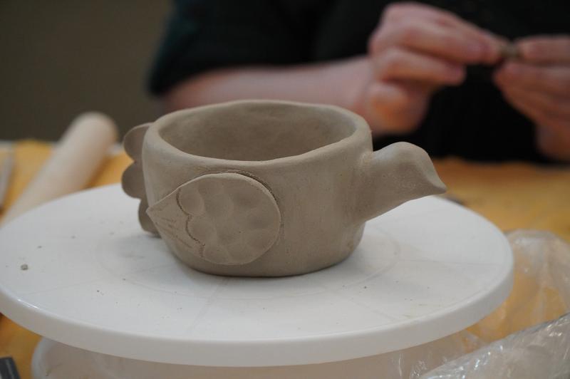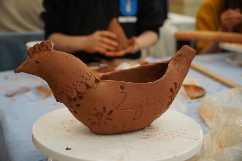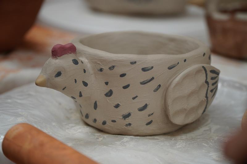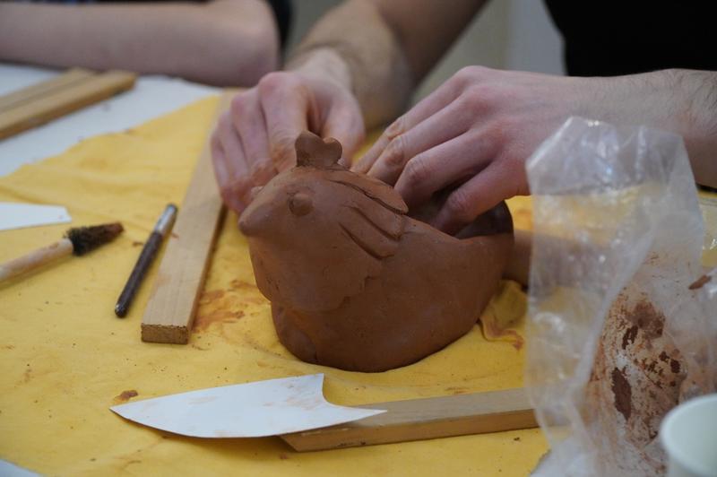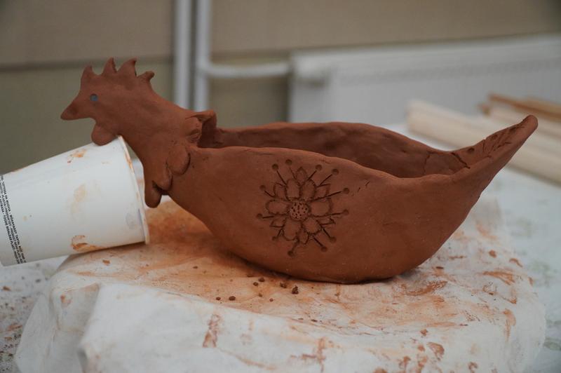Temat spotkania „Naczynie - Wielkanocna kurka”– rzeźba tworzona techniką lepienia z płata, z naciskiem na prostą formę, wyraźną strukturę i charakter postaci. Co ważne, kurka była nie tylko formą rzeźbiarską, ale również użytkowym naczyniem – małą ceramiczną formą, która może pełnić funkcję pojemnika lub świątecznej dekoracji stołu.