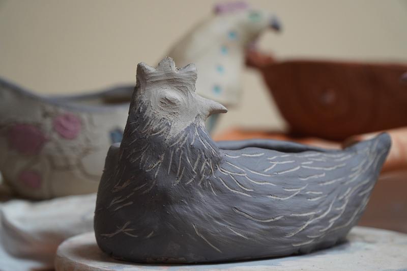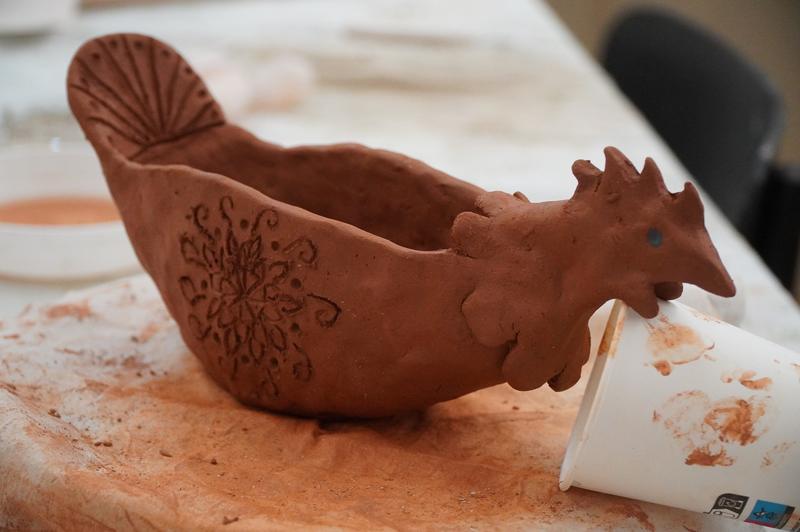 Podczas trzech godzin wspólnej pracy nie zabrakło rozmów, skupienia i radości tworzenia. Każda kurka okazała się inna – bo każda była osobistą, małą rzeźbiarską opowieścią i jednocześnie praktycznym, ceramicznym naczyniem.
